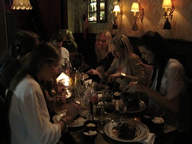 Nu har vi prcis kommit hem efter vår mysiga "Mandel-kväll" på ljuvliga restaurangen "puta madre"... Supermysig restaurang med fantastisk inredning som ska föra tankarna till en spansk bordell på 20-talet = härligt kitschigt =) Trerätters med spansk hurmanskost som avslutades med den obligatoriska hembakade tårtan som bara vara sååååå grym!!!
