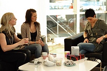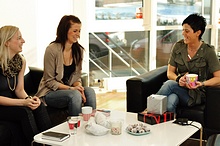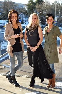 Emmelie har på sig "funky fair" jeansleggings som nu är slut men ev. kommer in igen till sommaren, "officel"-linnet och coola kavajen "Balzar". Elina har på sig snygga "Gli"-byxorna, "officiel"´-linnet och nyinkomna kaxiga västen "always" som fångas snyggt av vinden ;P Jag har på mig nya "ultimate exclusive highwaist" (som vi redan sålt 20 stycken av på en halvtimme ;P), "officiel"-linnet och nya coola "carlos" som också kom upp i dag. Både Emmelie och Elina har skinnarmbanden "parson", Elina har halsbandet "elegant", jag har armbanden "vexa" och "mala".