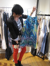 Emmelie har på sig "Cleave 5-pocket 163", "Officiel Long Tank" och skjortan "Ivy".