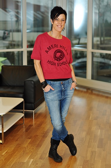 I dag har jag på mig mina favvojeans "gwen", linnet "soft love" och nya coola collegetröjan "lullo" som kommer upp i dag.