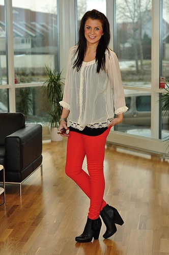 Emmelie har på sig "Officiel Long Tank", blusen "Marble" som kommer in igen och nya "Funky Foxy".