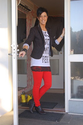 Nu ska jag och dottern åka och se genrepet till melodifestivalen som är här i Göteborg i kväll. Lotta och Elina jobbar i butiken i dag så jag är ledig. Jag har på mig nya leggingesen som kommer på måndag "funky foxy", nya tishan som jag visat er här som också kommer på måndag och kavajen "tyra" som redan finns på webshoppen (rekommenderas verkligen).