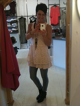 Jag vara bara tvungen att prova den nya spetsklänningen som kom när jag var i butiken och löste av Elina för lunch =P En heeeelt ljuvlig spetsklänning/tunika från ICHI med dubbla lager tyg som kommer i vitt och den rosa som jag har på mig här. Jag tog den rosa själv så i morgon frå ni se den på ett "riktigt" dagens-foto från webshoppen som är mycket bättre än den här "blogg"-bilden som jag tog själv i provhytten ;P