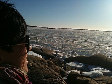 Nu har vi precis kommit hem efter en supermysig liten utflykt till havet. Såååå vacker vårdag har vi haft här i dag - UNDERBART!!! Isen hade spruckit upp helt nu och det är väl verkligen ett vårtecken! I rabatten börjar det även sticka upp lite grönt här hemma också så nu hoppas jag bara att vi får ha kvar vårsolen hos oss =D