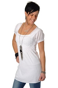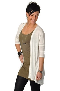 I dag mår Elina bra igen så jag jobbar som vanligt på webshoppen, kul att vara en hel dag i butiken som i går och träffa alla goa kunder... framförallt vissa som kom springande med andan i halsen innan stängning för att hinna hämta sin webshoporder... ;P I dag kommer alltså äntligen VILA-tunikan "toscana" som jag vet att många av er väntat på. Den är superfin i dubbla lager tunt bomullstyg med vit klännnig i botten och superfina asymmetriska detaljer och fina sydda volanger som ger det där lilla extra. I dag kommer även den coola korta stickade tröjan jag har på mig som är suverän till alla kjolar, chinos, jeans m.m nu. Jag sålde den direkt i butiken i går medans jag höll på att packa upp den ur kartongen och kunden matachade supersnyggt med chinos och ett officiel tanktop-linne till = kanonfint!!!