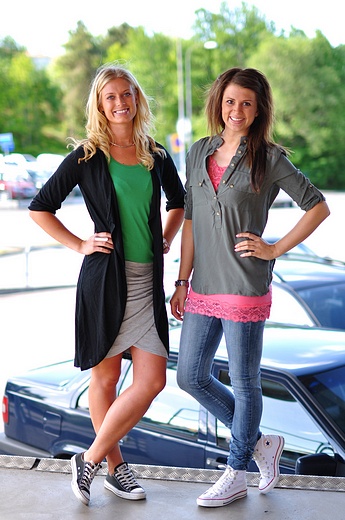 Evelina har idag på sig kjolen "Ayano Skirt", den nya färgen på "Officiel u-neck" som kommer upp idag och koftan " Robes Cardigan". Emmelie har jeansleggingsen "Duffy Denim", spetslinnet från Object "Pylle 64" som också kommer upp idag i härliga färger, och skjortan "Janita 3/4 Tunic" ;P