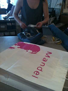 I dag var det lite kalasdag på vår gata så barnbutikerna hade lite kul happening med pilbågeskjutning m.m. Draperierna till provhytterna i butiken har tyvärr börjat gå sönder så jag sprang i väg en sväng till tygbutiken Gårda Textil och handlade nytt tyg, tråd m.m. I veckan ska vår gulliga Helena sy nya fina draperiner till oss som jag hoppas vi får upp innan nästa helg =)