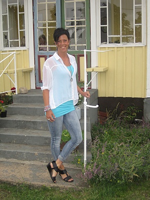 Brrrrr här var det kallt på Öland, fick byta om från midsommarklänningen och ta på mig jeans istället;P Nu ska vi iväg till min pappa som har vernissage här i dag på "Himmelsberga" så barnen sitter och ritar teckningar till honom just nu. I dag har jag på mig "funky"-jeans, "officiel"-linne och underbara skjortan från Only som jag tyvärr tror är slut nu ;P