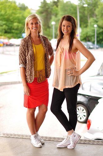 Emmelie har på sig "Bazel Slim Jeans", "Officiel Tank Top" och "Sofia Knit Dress". Evelina har "Nikoline Tights", "Officiel Long Tank" och tunikan "Mami". Båda har givetvis på sig ringen "Leopard" från Edblad.