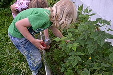 ... att plocka jordgubbar i trädgården - mmmmm helt ljuvligt goda är dom också ;) Nu ska jag ut på en lång powerwalk här innan frukosten, solen skiner så det lär bli en underbar dag idag ;)