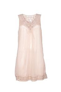 Den här superfina VILA-klänningen/tunikan kommer förhoppningsvis in redan i morgon. Det är tunt fint chifffongtyg med underklänning i och med nätta spetsdetaljer både upptill och hela vägen nertill. Kommer i färg som synes och i en somrig rosalila nyans. Priset är 349 kr.