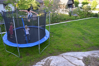 Tog en snabb powerwalk ner till båthamnen i kväll och det var sååå vackert, passerade även en hästhage så det var verkligen härlig sommaridyll ;) Nu har äntligen barnens mest efterlängtade "ting" blivit färdigmonterad också... studsmattan som nu står på våran nya snaaaaart färdiga gräsmatta ;P I morgon blir det fredagsmöte/frukost som vanligt på webshoppen och eftersom barnen är lediga så hänger de med en sväng dit också ;P
