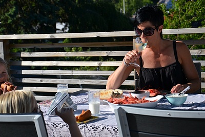 Strålande sol, färska räkor och iskallt vitt vin - kan en fredagkväll bli härligare =) Älskar dessa ljuvliga sommarkvällar när man kan sitta ute lääänge, har lyssnat till Håkan Hellströms senaste nu i kvällssolen och laddat inför morgondagen ;P psst... här ser ni mitt favvoplagg nu i sommar= lotus strap tunic!!!