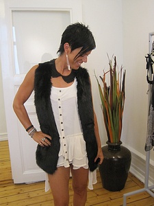Nu har jag precis varit på inköpsmöte med Pieces inför oktober/november och det var sååååå mycket snyggt!!! Kolla tex in den coola pälsvästen i svart jag har på mig här den var bara sååå grym, det är päls framtill och stickad kvalitet i ryggen så den blir väldigt nätt i modellen. Kaxigt halsband som ser ut som en krage vilket blir supercoolt, löskrage är en trend som syns i många modereprortage och då är ju detta halsbandet verkligen helrätt =)
