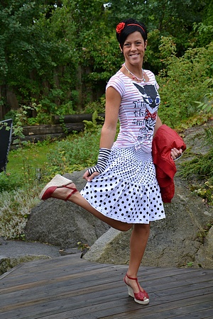 Jag har på mig funky highwaist (kornblått är tyvärr slut men andra färger finns ju kvar), "officiel"-linnet, "genner"-liinnet och nya cooooola sjalen som kommer i svart, kornblått och rosa.