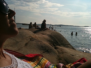 Åkte ner en sväng till badplatsen för att ta en glass i värmen och det slutade även med ett dopp i havet också. Det blev ju såååååå varmt här på eftermiddagen efter regnet så det svalkade skönt med ett kvällsdopp=)