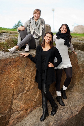 Lina har på sig de gråa "Funky Highwaist Leggings", härliga "Custa Knit Cardigan som kommer upp idag och "Patti Shop Scarf" som också kommer upp idag. Therese har på sig snygga "Holiday Leggings" som kommer upp idag, "Officiel Long Tank" och nya "Custa Knit Cardigan". Joline har på sig "Blondon Leggings", "Officiel Long Tank", den nya "Alive Lace Dress" som kommer upp idag och scarfen "Knor".