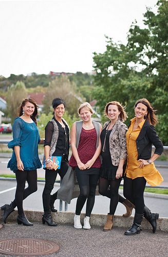 Joline har på sig superfina tunikan "tokya" som kommer i dag " och leggingsen "blondon". Jag har på mig västen "brittaknit" som kommer upp idag, skjortan "livina" och suveräna "funky wow". Lina har på sig "new millie", "soso leggings" och långvästen "sound long". Elina har också på sig superfina tunikan VILA-tunikan "tokya", "new nikoline"-leggings och coola kavajen "snake". Therese har på sig fina "dona"-skjortan, "kental"-leggings och kavajen "tijo".