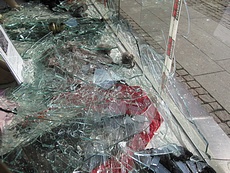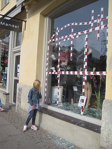 ... 05:23 ringde telefonen i natt och det var Securitas som meddelade att stora skyltfönstret i butiken blivit pangat, fy f-n vad surt =( Nu blir det städning och röjning av glassplitter alltså. Som tur var hade ingen gått in iaf så inget är förstört inne i butiken. Roligare saker kan man ju göra en söndag...