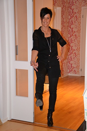 Jag har på mig suveräna "funky highwaist", "romance"-linnet och nya heeeelt underbara koftan som kommer i dag "kasta" som jag verkligen rekommenderar!!!