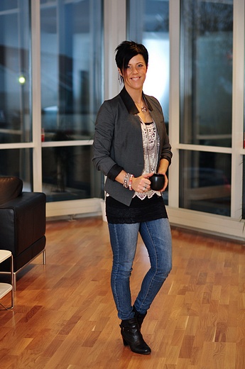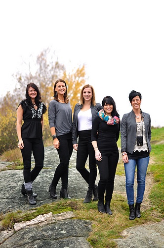 * Joline har på sig den söta "cuna" top och "funky high". * Therese har "betty" top tillsammans med "funky wow". * Elina har "leonor"-kavajen och allas favorit "funky high" och "monaco"- örhängena. * Fanny har "officiel 3/4" och även hon "funky high" med den fina sjalen "fattima". * Jag har idag på mig kavajen "leonor", "amaya"-toppen tillsammans med "funky high denim" och "carin necklace".