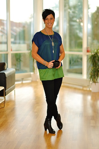 I dag har jag på mig "funky wow", toppen "next", smyckena "me and you", "nine life", join leopard", "matt block", "glow ring", "rie"-creolerna och "eternity"-ringen.
