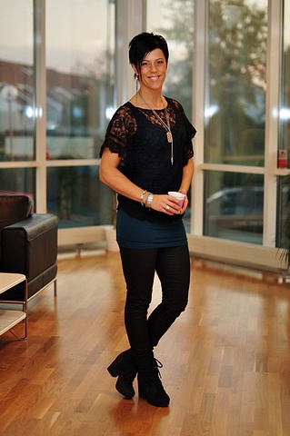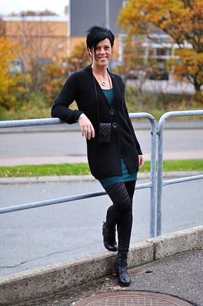 * Therese har på sig nya boleron "Shimmy Folio", klänningen "Elves Dress" som kommer upp idag, strumpbyxorna "Blondon Tight", örhängena "Hermine" och halsbandet "Electra Must".