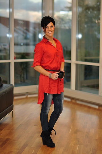I dag skiner solen och vi har en klarblå himmel så nu väntas en underbar höstdag här i Göteborg=) Vi ska strax ha vårt fredagsmöte här på webshoppen så snart Elina kommit hit från stan så vi alla är samlade=) I dag kommer massa efterlängtade plagg upp, tex "cleave 5p coated" som jag har på mig här, det är modellen med lite vaxad yta som vi sålde slut direkt när de kom in för några veckor sedan. Den supersköna oversizetröjan som jag har på mig här kommer nu också i grått och blått, skön lång stickad polotröja, en suverän cardigan från VILA ochmassa finfina plagg såklart ;P Jag har på mig "cleave 5 p coated", "gabi"-tröjan, "me and you"-halsband, "join snake", "join leopard", "matt block", "glow ring"och "eternity"-ringen.