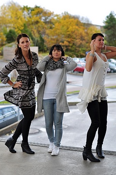 Så här kan det se ut innan själva outfitbilden kommer upp som ni ser här på bloggen... Som synes så blåser det en hel del här i Göteborg så tjejerna har svårt att hålla balansen =)