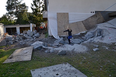 Ja så här ser det ut hemma hos oss nu för tiden ;P Fullt trädgårsdprojekt på gång runt större delen av huset, vi startade med en dräneringen och när den väl var i gång så växte projektet i vanlig ordning så nu sprängs det och grävs för fullt här hemma ;P Vi passar på att göra de projekt som vi visste att vi skulle göra närmsta året/åren redan nu när vi hade bra folk på plats=) Nu ska det läggas stengång och"stenplats"/altan, byggas stentrappor, mur m.m m.m så nu bor vi i ett stenbrott ;P Vi har i dag passat på att röja hela garaget så det har varit fixardag hela dagen så nu ska vi bara slappa här i kväll hoppas jag ;)