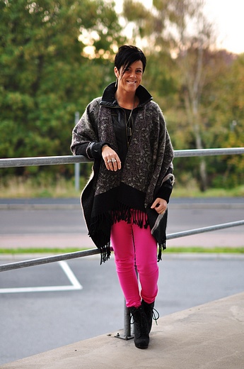 I dag får ni bara inte missa den här ljuuuvliga capen som äntligen kommit in (ni var många som blev tokiga i den när jag visade den från inköpsmötet i våras). Jag tog den såklart själv direkt och har redan hunnit använda den i helgen - sååå underbart plagg att ha på sig!!! Jag har även på mig de nya "cleave 5"- i knallrosa som kommer i dag, "toppen "elves" och såklart capen "feng".