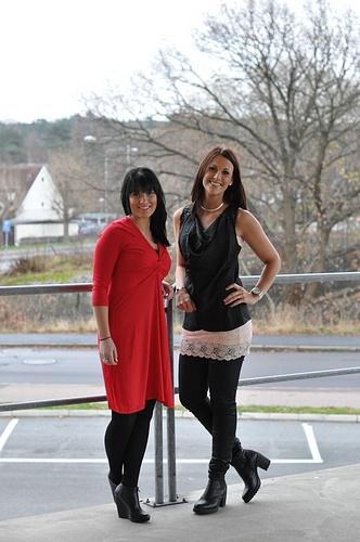 *Therese har på sig "trim bolero" som kommer upp idag, den fina toppen "moula", "funky coat high" och den nya "shanna"-sjalen.