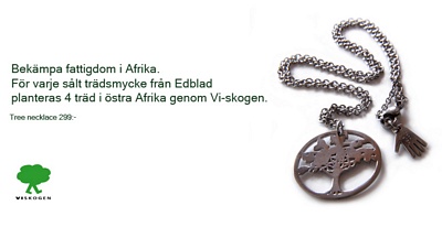 EDBLAD gör detta fina halsband som kommer till oss nu i november månad och för varje sålt smycke så planteras 4 st träd i östra Afrika. Ett bra julklappstips också, känns fint när man gör en liten god gärning samtidigt ;)