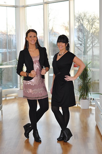 * Therese har på sig nya klänningen "Wise", kavajen "Tijo" och strumpbyxorna "Blondon".