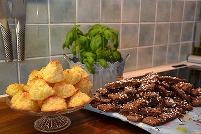 Detta är vad jag har hållit på med nu (samtidigt som jag jagat SOYA och lyckats få tag på "felix" som sålde slut här ;P). Kokostoppar (som är sonens favvo) och choklad-"snittar är nu klara till helgens kalas och i frysen har jag kardemummakor med nötter så nu är det bara tårtan kvar och den beställer jag nog från Lasse Maja;P Nu ska jag fixa några äreden sedan ska jag hämta barnen lite tidigare för vi ska till simhallen på "äventyrs"/lek-badet där;P