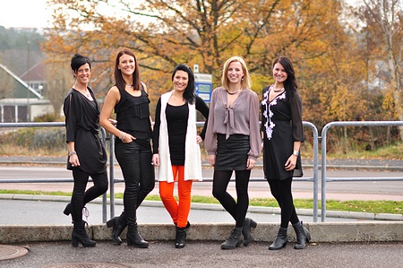 * Jag har på mig "casey dress" och "salca leggings". * Therese har "julie" toppen och byxan "cubu". * Fanny har object västen "anais", "officiel long top" och dom coola "funky high". * Elina har idag blusen "bula" tillsammans med "gli" kjolen och "new nikoline tights". * Joline har den nya fina "captain dress" som kommer upp idag och "office tights" samt det nya halsbandet "stela" som också läggs upp idag.