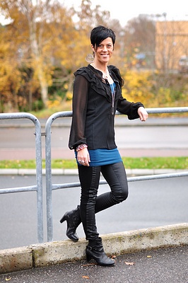 * Therese har på sig glittertröjan "Alice Knit Blouse", byxorna "Funky HW", "Danielle Earrings" och "Electra Must Necklace".