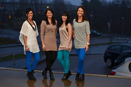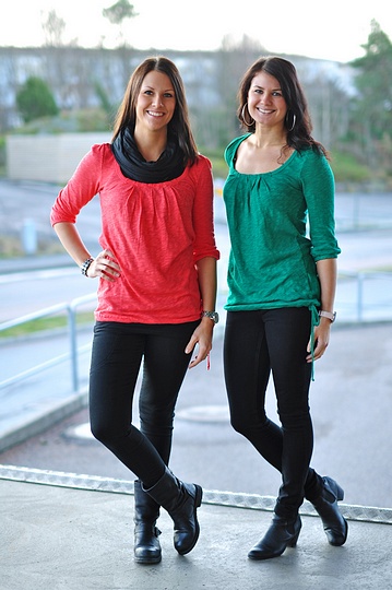 * Jag har på mig "funky hw denim leggings", "officiel"-linne och "summer breeze". * Joline har på sig nya glitterklänningen/tunikan som kommer i dag "calam" och kental"-leggings. * Fanny har på sig nya glitterlinnet som också kommer i dag "danan" och coola "funky hw" i turkost. * Therese har på sig "funky hw denim leggings" och nya randiga tunikan "vlatka" som också kommer idag.
