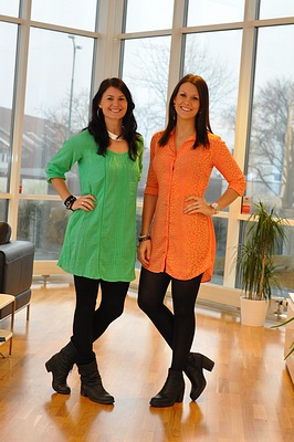 Joline har på sig nya härliga "lotus 3/4"-tunikan som kommer i härliga vårfärger, nya supercoola halsbandet "naran" som ni bara inte får missa (det går inte att få tag på fler av halsbandet i nuläget så var snabba) och strumpbyxorna "kental". Therese har på sig superfina långskjortan "rapallo" som jag verkligen rekommenderar och sköna "new nikoline".