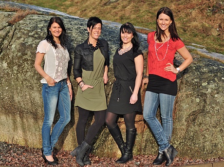 Det känns otroligt men solen var verkligen stark i dag när vi skulle ta dagens-fotot här... fortsätter det såhär så är snart snön helt borta här =D * Joline har på sig nya suveräna "ultimate"-jeansen som kommer i dag, rekommenderas absolut (det är den modellen med normal midja som vi sålt kanon av tidigare). Toppen är fina "sophia lace" med "officiel"-linnet under. * Jag har på mig nya tunikan "janet", "kental" och "bow"-jackan som det blir påfyllning på i dag så var snabba här nu vid 11 för den har ju sålt slut bägge gångerna den kommit in nu =) * Fanny har också på sig nya suveräna tunikan "janet dress" och storsäljaren "vido"-halsbandet som ni måste vara snabba på för det sålde slut på en timme sist vi hade det inne ;P * Therese har på sig coola "duffy lina", "laercut"-toppen med "officiel"-linne under.