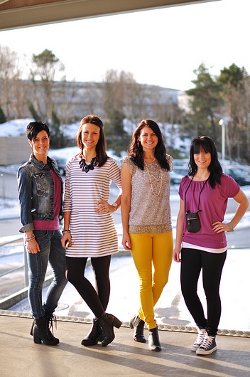 Härligt väder här i dag så man får lite vårkänslor ;P * Jag har på mig nya toppen som kommer upp i dag "days", "up c"-jeansen och jeansjackan "chris" som jag verkligen gillar. * Therese har på sig nya Vila-tunikan "niva" som kommer i dag, halsbandet "fobo" och leggingsen "blondon". * Joline har på sig de nya cooola gula "funky hw" som kommer i dag och fina vårtoppen "arlette" med "offciel"-linne under. * Fanny har också på sig fina "days top" med "officiel"-linne under och nya mobilväskan från VILA som kommer i dag "venissa".