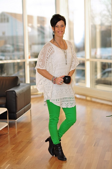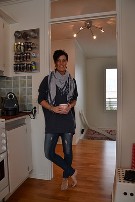 Dottern har agerat fotograf här så ha överseende med ett lite mörkare foto som är något "lägre taget" än vanligt ;P Jag har på mig underbara toppen "vlatka gabi", nya superfina sjalen "narmy" som ni bara inte får missa och "funky hw" som kommer in i april månad igen=)
