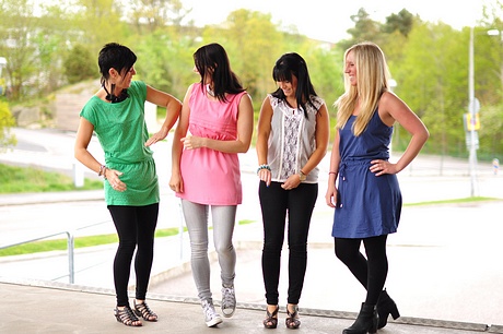 * Jag har på mig den nya sköna tunikan "sketchy" som kommer upp i dag och "officiel leggings". * Joline har på sig en supersöt tunika "Madrid" som också kommer i dag tillsammans med de sköna "funky fast" i grått. * Fanny har på sig nya fina spetslinnet från Object "nat ss top" som också kommer i dag och "funky hw". * Amanda har på sig nya Object-tunikan/kläningen som är med supercool brottarryg i snygg design som också kommer upp i dag "Dicte dress" och "officiel leggings".