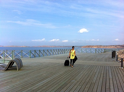 Jag har på mig sköna Saint Tropez-klänningen "linda H1885", "officiel"-leggings och "fobo"-halsbandet.