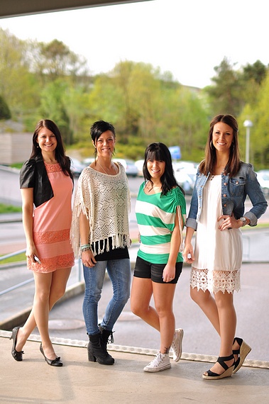 * Joline har på sig den nya underbara Vila-klänningen "riga" som är med superfina spetsdetaljer framtill och den cooooola boleron "kean". *Jag har på mig den ljuvliga ponchon från Object (som jag norpade efter att ha fotats i den, rekommenderar den verkligen). * Fanny har på sig den fina randiga toppen som jag tipsat om här på bloggen "karissa top" och supersköna shortsen "low prince". * Therese har på sig den fantastiska klänningen med spetskanten nertill "lavis" som ni bara inte får missa och coola "chris light"-jeansjackan.