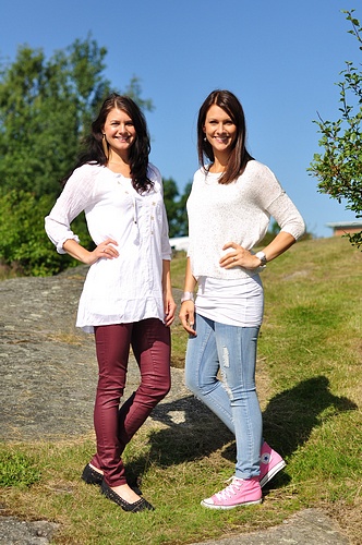 *Joline har på sig nya Object-tunikan "Sparta" och coola vaxade byxorna "Cleave 5 Pocket Coated Zip" som kommer upp idag. *Therese har på sig underbart fina glittertröjan "Palli", "Officiel"-linne och jeansen "Funky Fiesta".