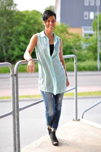 Nu ska vi strax iväg till skolan med barnen som har examen i dag=) Jag har på mig nya underbara "heru" som kommer upp i dag - rekommenderas verkligen!!! Jag har även på mig sköna "funky hw denim", "surface"-linne och halsbandet "elina".