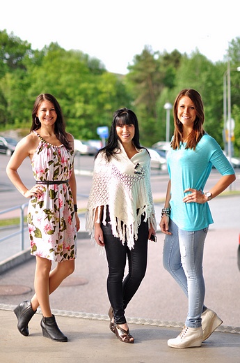 Solen tittar fram och vi håller tummarna att det blir en fin dag! *Joline har på sig nya klänningen "Dali" (som är i samma modell som "Bali", som vi sålt superbra av!) Kommer i storlekarna s-xxl. *Fanny har på sig härliga ponchon "Boba" som vi hade inne förra sommaren. Denna gången i liiite ljusare nyanser av creme och grått. Hon har även på sig de nya byxorna med vaxad yta och 7/8 längd "Crop Low Slim Jeans". *Therese har nya färgen på toppen "Lukas" (som även kommer i gult & korall samt påfyllning av mintgrönt, gammelrosa, lila, svart & vitt) och byxorna "Funky Fiesta Holes". Missa inte att det även blir påfyllning på EDBLAD-smyckena "Pling" och "Amy"!