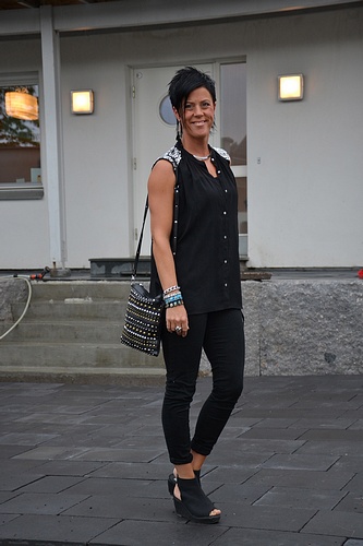 Jag har på mig underbara "Funky Highwaist Punch ", "officiel"-linne, "liskas"-paljettlinne som är sååå fint och underbara skinnjackan "massi". Smyckena är nya halsbandet som komme ri dag "bali", "leopard"-ringen, "courtney"-armbandet, "parson"-arbandet och "tasipi"-örhänget.