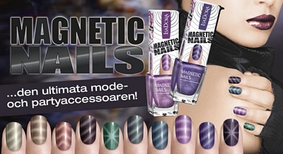 Det står ju en hel del om "nya nagellackatrenden" med magnet-nagellack nu i modemagasinen. Har ni testat detta än eller? Jag köpte den enkla/billigare varianten från Isa Dora och testade det ikväll och är faktiskt helnöjd. Enkelt sätt att få lite mer design på lacket;P Man målar och håller sedan den lilla magneten som medföljer över nageln och vips så får man ett mönster=